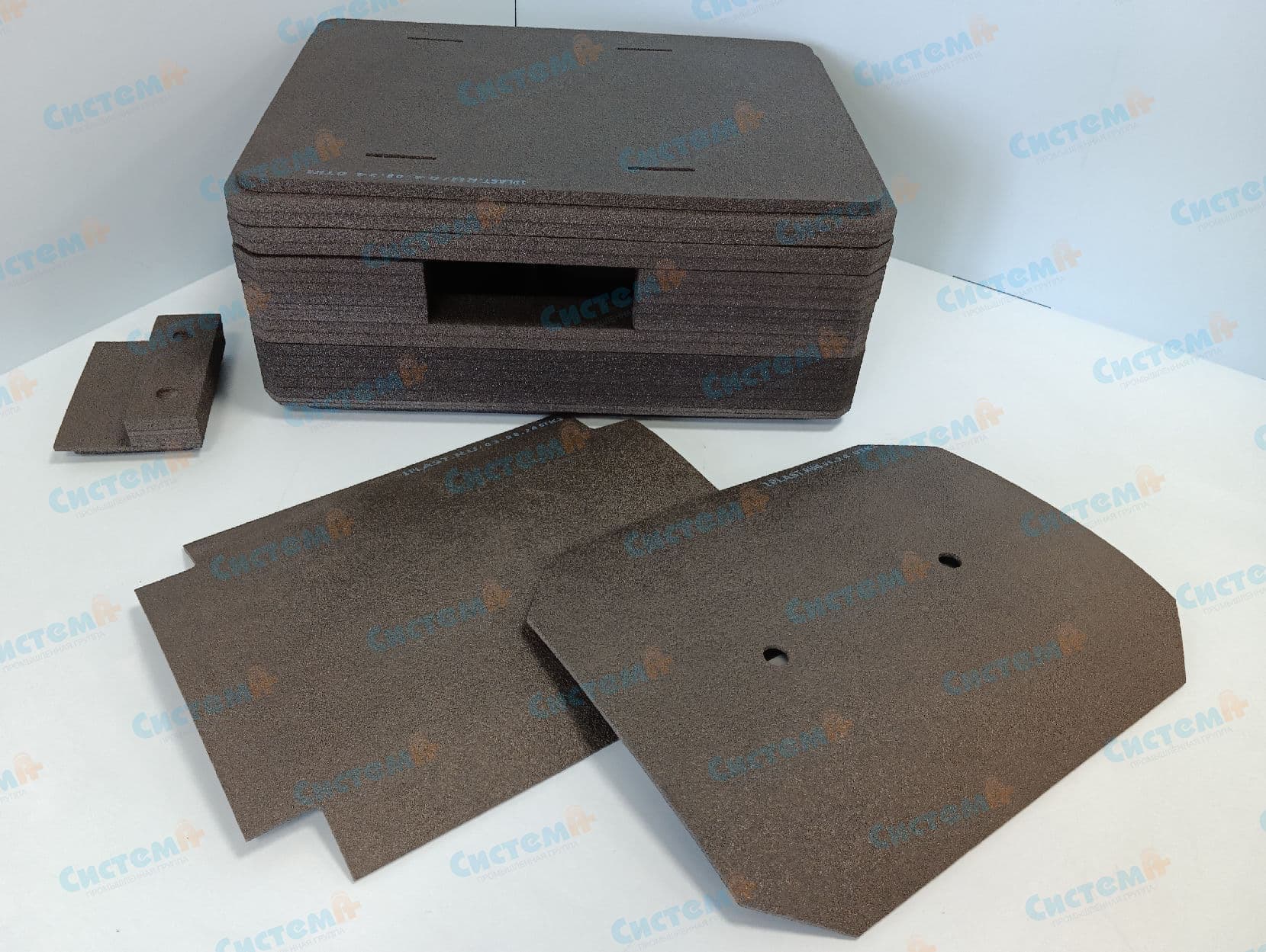Для работы выбрали прочный и долговечный сшитый пенополиэтилен. Этот материал отлично подходит для защиты хрупких грузов: он хорошо гасит энергию ударов, мягко облегает товар со всех сторон, не дает образовываться на изделии даже небольшим трещинам и сколам.
